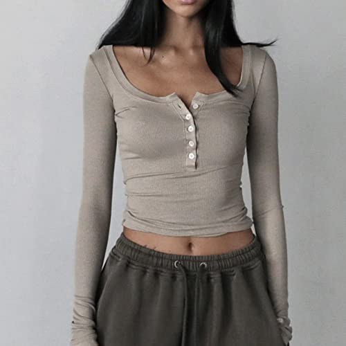 HUANLE Koreaanse mode vintage kleding crop top sexy vintage casual tops vrouwen lange mouw crop top casual knop up tops schattige o hals