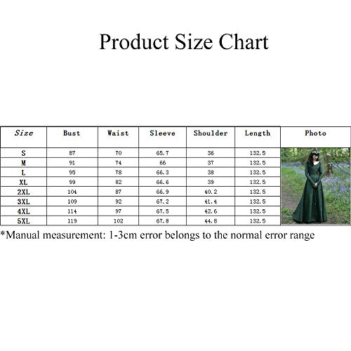Specification: Middeleeuwse kleding voor feest,Middeleeuwse jurken Vintage losse jurk,Classical Medieval Dress, Long Sleeve Round Neck Dress-green_4XL